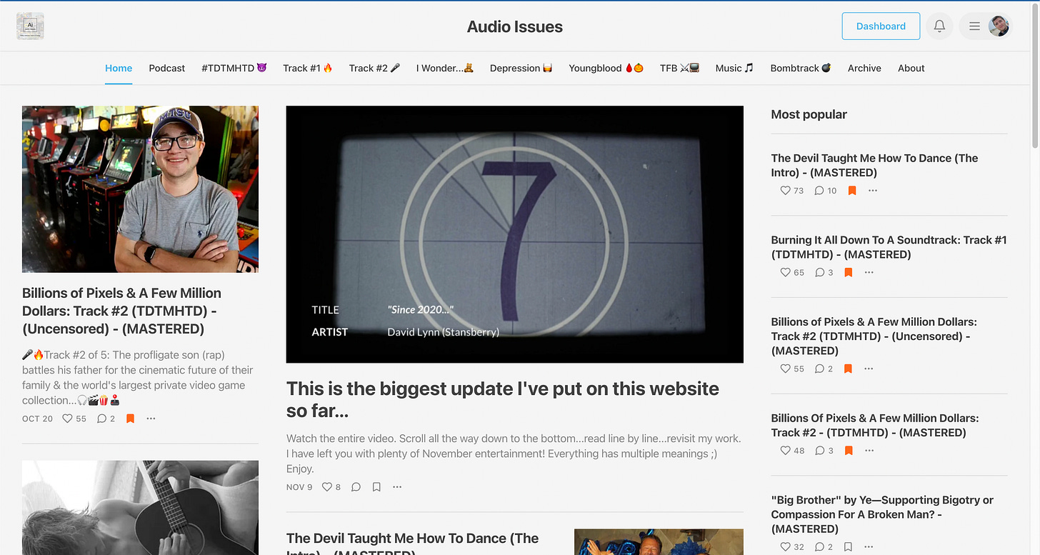 But, I have some news first. My more personal, music/movie/book-themed Substack, Audio Issues, has taken off considerably—with a lot of readers and a lot of excitement.